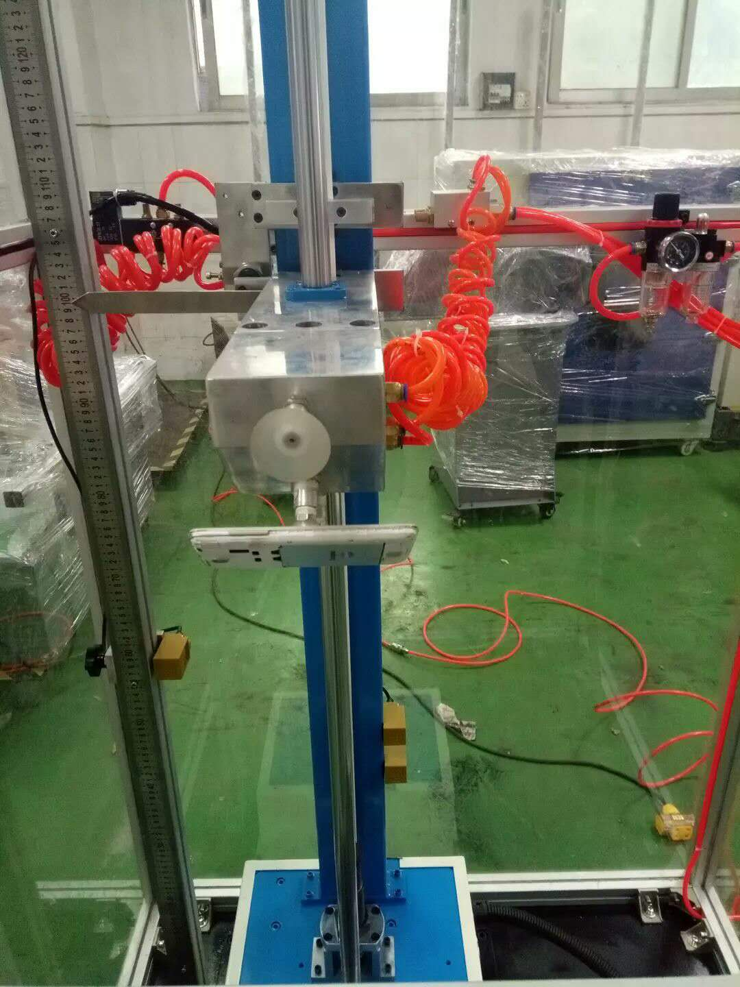 | 產品特點:1. 三個真空吸盤自由電控切換(各自獨立) 2. 每次跌落完畢,自動返回到吸附位; 3. 跌落高度、吸附高度可設定,跌落次數顯示/清零; 4. 安全門保護功能(全罩式); 5. 采用真空吸盤吸附,配合萬向調節裝置可完成0°、45°、90°菱角面跌落; | |